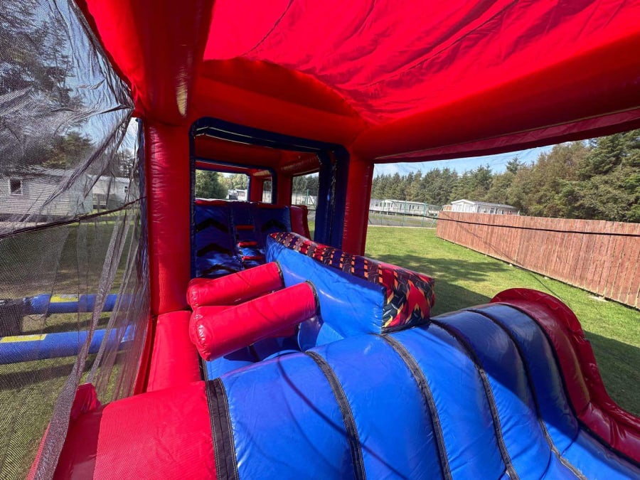 Our 45ft Ninja Warrior All Age Assault Course features heart-racing obstacles that will test your strength, agility, and determination. Begin your journey by navigating through two challenging tunnels, feel the thrill as you climb the towering structure, and experience the ultimate rush as you slide down to victory! With its dual-lane setup, you can challenge friends and family to exhilarating races and friendly competitions. 🏃♂️🏃♀️