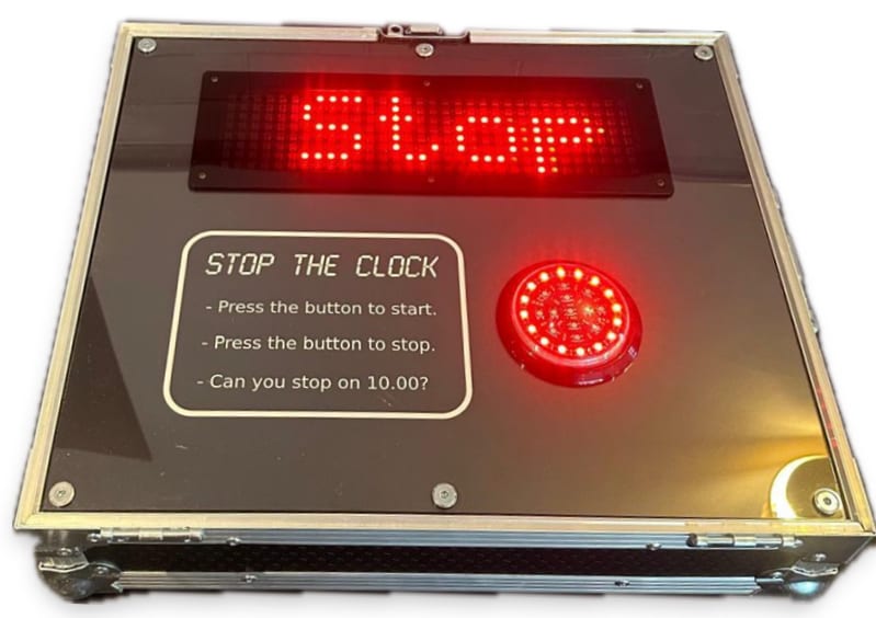 Stop The Clock in Edinburgh, Newcastle & Leeds is a simple, addictive game that tests your timing to the millisecond. Press the big red button to start. Press it again to stop exactly at 10.00 seconds. Sounds easy. It isn’t. The result: instant fun, replay value, and fierce competition. Perfect for parties, retail promotions, corporate events, and family nights. 🎉