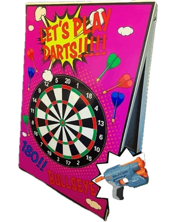 Transform your event into an exhilarating experience with our Let's Play Darts Fete Game. Whether you're hosting a school fete, corporate event, or exhibition, this game is the perfect attraction to captivate guests of all ages. Combine the thrill of darts with the fun of shooting a Nerf gun, creating a dynamic and engaging activity for everyone! 🤩