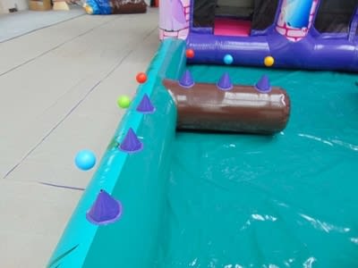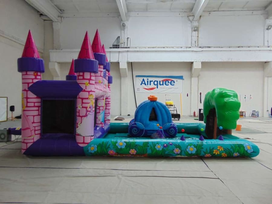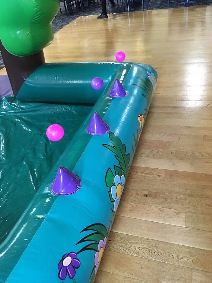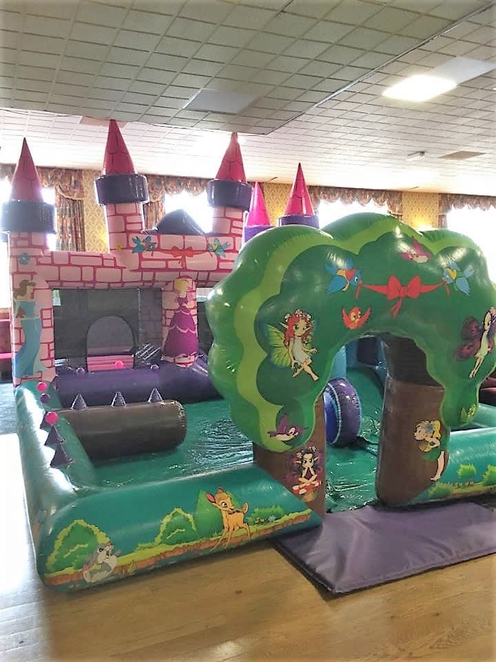 Features... small bouncy area, ballpit (balls NOT included), slide, air jugglers, space to add softplay pieces if you wish (not included).